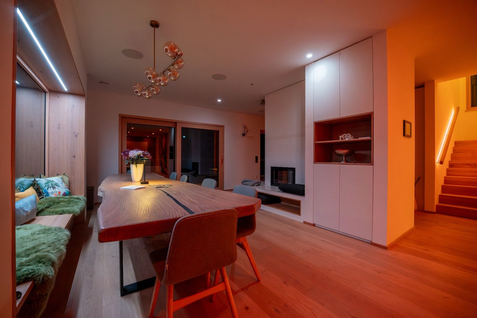 Mit individuellen Szenen verwandeln Sie Räume in Erlebniszonen. Arbeiten, Kochen, Präsentieren, Entspannen, Reinigen, Beruhigen – jede Szene hat ihre eigene Lichtkomposition. Farben, Intensität und Übergänge werden in der Loxone App eingestellt, gespeichert und jederzeit wieder aufgerufen. Ein Fingertipp – und der Raum verändert sein Gefühl.